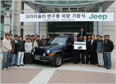 한편 ACE Lab에 짚 체로키를 기증한 다임러크라이슬러는 지난 98년 크라이슬러와 다임러 벤츠의 합병으로 탄생했으며 독일과 미국에 두 개의 본사를 두고 있다. 다임러크라이슬러 코리아는 다임러크라이슬러의 한국법인으로 92년 국내에 그 차량이 첫 선을 보였다. 현재는 서울, 부산 등 주요 도시에 10여 개가 넘는 딜러, 자동차 전시장 등이 위치하고 있다. 웨인 첨리 사장은 기증식에서 “미래의 한국 자동차 산업 발전에 기여하고자 하는 뜻에서 한양대에 짚 체로키를 기증했다”며 “앞으로도 산학협력에 지속적인 관심을 가지고 계속해서 지원을 아끼지 않을 계획이다”고 말했다. 선우 교수는 “다임러크라이슬러로부터 기증받은 연구용 차량을 통해 의 전자제어 연구 수행의 질적 향상을 도모하겠다”며 “더 나아가 ACE Lab이 우리나라 자동차 산업 발전에도 큰 기여를 할 것으로 기대한다”고 밝혔다.