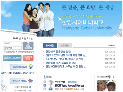 이렇게 사이버대가 끊임없이 발전하는 저력은 무엇인가. 많은 이들이 수준 높은 강의 콘텐츠를 가장 큰 강점으로 뽑는다. 사이버대학은 그 특성상 기술의 변화에 민감하게 반응하고 그 변화의 속도도 빠르다. 본교 사이버대학은 실용적인 교육 커리큘럼 하에 완성도 높은 교육콘텐츠를 개발·제공함으로서 타 사이버대학과의 차별화를 통해 발전의 토대를 닦았다. 또한 사이버대 학생들을 위해 ‘한국은행과 함께하는 목요금융특강’과 같은 오프라인 특강을 준비했고 학생들이 본교 백남학술정보관 등의 복지시설을 이용할 수 있다는 점도 빼놓을 수 없는 장점이다. 이밖에도 한양대학교와의 학점교류제도 등을 제공해 학생들의 교육 선택권을 넓혀주고 있다. 이 같은 발전의 토대 위에 삼성전자, 삼성중공업, 농협, 국민건강보험공단 등 국내 유명 기업들과 산학위탁협력을 체결하고 호주 맥쿼리 국립대학과의 상호 학술 교류 및 협력관계를 체결하는 등 눈에 띄는 성과를 이뤄내고 있다.이제 사이버대의 목표는 세계다. 최근 ‘VISION2020 중장기 발전계획’을 통해 2010년까지 아시아 원격대학교 1위, 2020년까지 세계 3대 원격대학교로 진입하고자 하는 사이버의 중장기 발전목표를 세웠다. 구체적으로 2008학년도 대학원 석사과정 개설, 2010학년도 박사 과정을 개설해 2012년부터는 재학생 2만 명의 종합대학교제체로 거듭난 뒤 중국, 미국, 유럽 분교 교육센터를 설립해 ‘세계 Top3 사이버대학’으로 발돋움한다는 계획이다.