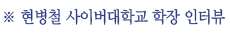 “교육컨텐츠의 우수성은 다시 강조하지 않더라도 될 것이라 믿는다. 우리 사이버대는 사랑의 실천이란 한양학원의 교육이념을 따르고 있다. 다만 교육방법이 다르기 때문에 교육대상이 다를 뿐이다. 사이버대학은 교수와 학생, 학생과 학생간의 직접적인 교류가 적어 자칫 ‘차가운 교육’이 될 수 있다. 하지만 본교는 지속적으로 오프라인 모임을 활성화해 본교 학생들이 이 시대가 요구하는 능력을 갖춘, 인간미가 느껴지는 따뜻한 학생으로 되도록 노력하고 있다.”