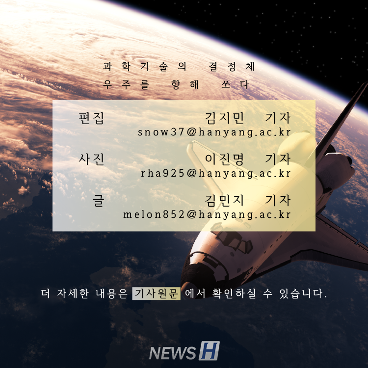 류근 교수(기계공학과), 정부 우주핵심기술개발사업 선정 ▲ 카드뉴스의 원본기사는 아래에서 읽을 수 있습니다류근 교수(기계공학과), 정부 우주핵심기술개발사업 선정 관련기사 [신문 읽어주는 교수님] 우주 정복 시대, 누리호 발사가 갖는 의미 김지민 spotlight_5@naver.com 다른기사 보기 저작권자 © 뉴스H 무단전재 및 재배포 금지 당신만 안 본 뉴스 [포토스토리] "AI 시대 해답은 브랜딩", 오세훈 서울시장의 경영학 특강 현장 Into the Creation 2025, 창작자들의 꿈에 날개를 이찬규 학생, 사이버·우주 융합연구로 2025 사이버안보논문공모전 대상 수상 한양대, '2026 QS 지속가능성 순위' 세계 161위, 국내 4위 기록 해커톤에서 인턴십까지, 현대차 사내 스타트업에 다녀오다 [창업지원단 인턴십 경험기] [포토스토리] 한양 속에 사회혁신을 품다, SSIR 먼슬리 콜로키움 현장 행복은 좋은 경험의 ‘빈도’에서, 서은국 교수와 함께한 한양인의 힐링콘서트 현장 2025 중앙일보 대학평가 서울 3위, ERICA 13위 댓글삭제 삭제한 댓글은 다시 복구할 수 없습니다. 그래도 삭제하시겠습니까? 비밀번호 닫기 기사 댓글 0 댓글 접기 로그인 후 이용 가능합니다. 댓글 내용입력 비회원 로그인 이름 비밀번호 댓글 내용입력 댓글쓰기 계정을 선택하시면 로그인·계정인증을 통해 댓글을 남기실 수 있습니다. 회원 로그인 비회원 글쓰기 이름 비밀번호 자동등록방지 로그인 옵션 창닫기 기획기사 [포토스토리] "AI 시대 해답은 브랜딩", 오세훈 서울시장의 경영학 특강 현장 Into the Creation 2025, 창작자들의 꿈에 날개를 해커톤에서 인턴십까지, 현대차 사내 스타트업에 다녀오다 [창업지원단 인턴십 경험기] [포토스토리] 한양 속에 사회혁신을 품다, SSIR 먼슬리 콜로키움 현장 행복은 좋은 경험의 ‘빈도’에서, 서은국 교수와 함께한 한양인의 힐링콘서트 현장 [카드뉴스] '한양대학교 SDGs? 알고 보니 내 일상 속에 있었다!' 1편