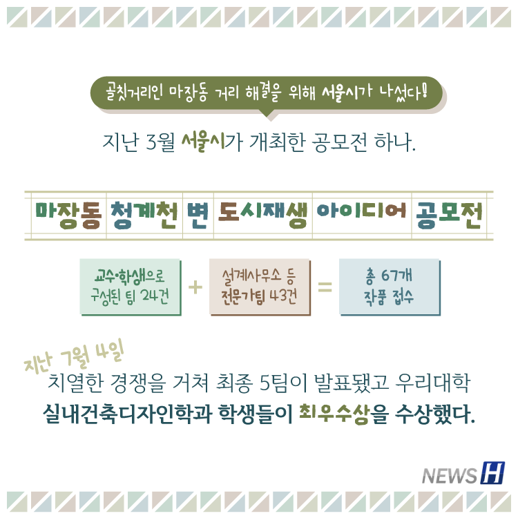 서울시가 주최한 '마장동 청계천변 도시재생 아이디어 공모전'에서 최우수상(2위) 수상