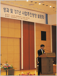 지난 달 28일, 본교는 HIT에서 교육부 주최로 특성화사업성과 및 07년 사업추진 방향 발표회를 열었다. 이번 행사는 사업시행 4년차를 맞아 특성화사업의 성과를 점검하고, 보다 효율적인 사업 추진방향을 모색하기 위해 마련됐다. 발표회에는 이종서 교육부 차관을 비롯해 참여대학의 기획처장 및 특성화사업단장, 국회 관계자 등 200여명이 참석했다. 이 차관은 “특성화사업단에서 열심히 일한 직원들에게 이 자리를 통해 감사드린다”라며 직원들을 격려했다.수도권 대학특성화사업단 협의회장을 맡고 있는 서울대 박은정(법과대·법학) 교수는 특성화사업에 대해 “각 대학의 내부혁신이 필요한 시점에서 수도권 대학이 자체발전전략을 기초로 비교우위에 있는 분야와 기능에 집중하도록 유도하는 사업”이라고 말했다. 사업성과 분석결과를 발표한 핵심소재특성화사업단 센터장 심광보(공과대·세라믹) 교수는 “학내 자원 집중을 통한 대학 특성화가 가속화되고, 구조개혁이 지속적으로 이뤄지고 있는 것이 뚜렷한 성과”라고 밝혔다. 한편 중간평가에서 ‘핵심소재 분야 글로벌 리더 양성’을 목표로 뛰고 있는 본교를 비롯해 학내 구조조정을 통한 `미디어공연영상대학'을 신설한 중앙대 등 5개 대학이 ‘우수 사업단’으로 선정돼 각각 성과를 발표했다.