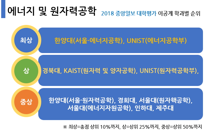 ▶ 2018 중앙일보 대학평가 이공계 학과평가 '에너지 및 원자력공학' 기사 바로가기 (클릭)