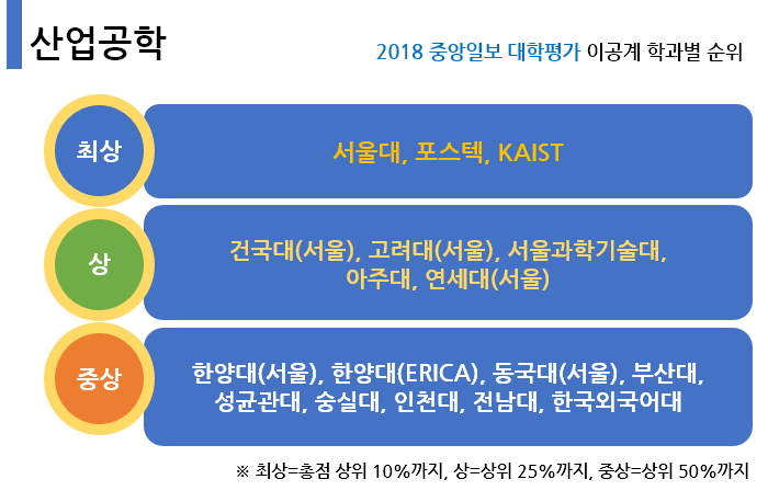 ‘중상’ 등급에 원자력공학과(서울), 산업공학과(서울), 산업경영공학과(ERICA)