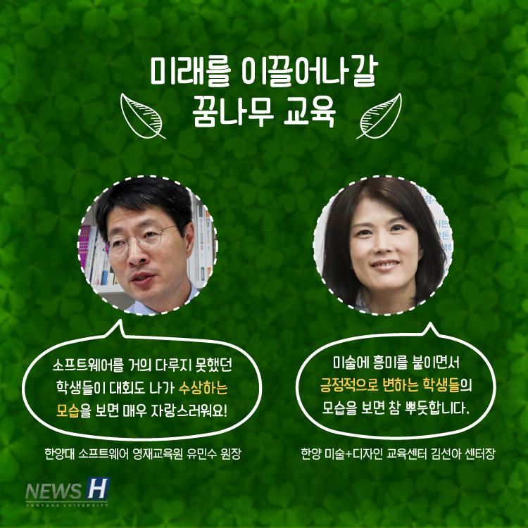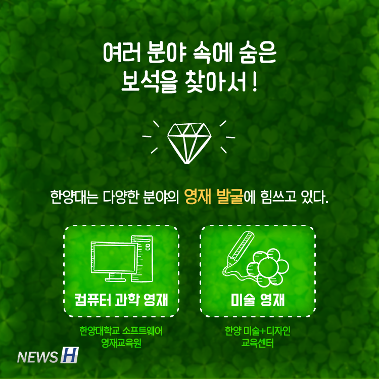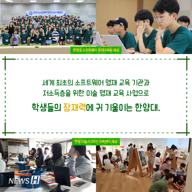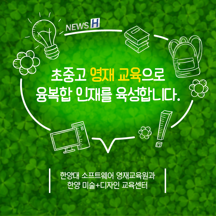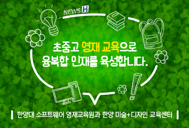 ▲ 카드뉴스의 원본 기사는 아래에서 읽을 수 있습니다- 초중고 영재 교육으로 융복합 인재를 육성합니다▲ Click to read the English article- Hanyang's Future Generations in Art and Software