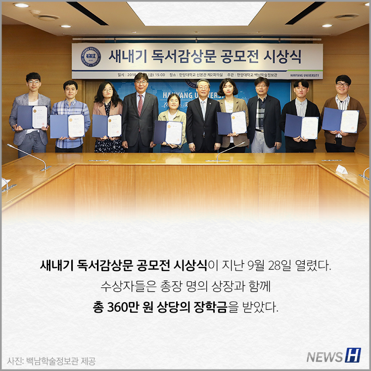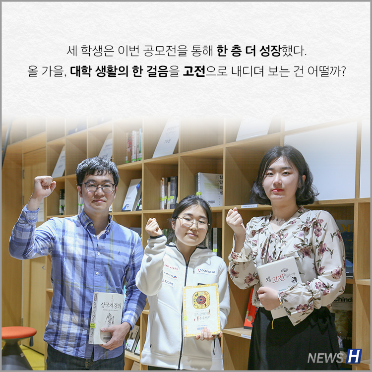 새내기 독서감상문 공모전 수상자들을 만나다 ▲ 카드뉴스의 원본 기사는 아래에서 읽을 수 있습니다- 고전의 세계에 빠진 아기 사자들▲ Click to read the English article- Why Do You Read the Classics? 키워드 '한양위키' 키워드 보기 #백남학술정보관 #새내기독서감상문공모전 #왜고전을읽는가 #카드뉴스 #한양대 오채원 chaewon225@hanyang.ac.kr 다른기사 보기 저작권자 © 뉴스H 무단전재 및 재배포 금지 당신만 안 본 뉴스 [포토스토리] "AI 시대 해답은 브랜딩", 오세훈 서울시장의 경영학 특강 현장 Into the Creation 2025, 창작자들의 꿈에 날개를 이찬규 학생, 사이버·우주 융합연구로 2025 사이버안보논문공모전 대상 수상 한양대, '2026 QS 지속가능성 순위' 세계 161위, 국내 4위 기록 해커톤에서 인턴십까지, 현대차 사내 스타트업에 다녀오다 [창업지원단 인턴십 경험기] [포토스토리] 한양 속에 사회혁신을 품다, SSIR 먼슬리 콜로키움 현장 행복은 좋은 경험의 ‘빈도’에서, 서은국 교수와 함께한 한양인의 힐링콘서트 현장 [포토스토리] "AI 시대 해답은 브랜딩", 오세훈 서울시장의 경영학 특강 현장 댓글삭제 삭제한 댓글은 다시 복구할 수 없습니다. 그래도 삭제하시겠습니까? 비밀번호 닫기 기사 댓글 0 댓글 접기 로그인 후 이용 가능합니다. 댓글 내용입력 비회원 로그인 이름 비밀번호 댓글 내용입력 댓글쓰기 계정을 선택하시면 로그인·계정인증을 통해 댓글을 남기실 수 있습니다. 회원 로그인 비회원 글쓰기 이름 비밀번호 자동등록방지 로그인 옵션 창닫기 기획기사 [포토스토리] "AI 시대 해답은 브랜딩", 오세훈 서울시장의 경영학 특강 현장 Into the Creation 2025, 창작자들의 꿈에 날개를 해커톤에서 인턴십까지, 현대차 사내 스타트업에 다녀오다 [창업지원단 인턴십 경험기] [포토스토리] 한양 속에 사회혁신을 품다, SSIR 먼슬리 콜로키움 현장 행복은 좋은 경험의 ‘빈도’에서, 서은국 교수와 함께한 한양인의 힐링콘서트 현장 [카드뉴스] '한양대학교 SDGs? 알고 보니 내 일상 속에 있었다!' 1편