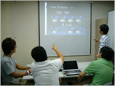 장의선(정통대 · 컴퓨터) 교수가 이끄는 ‘디지털 미디어 연구실(이하 연구실)’은 이러한 디지털 시대를 더욱 풍요롭게 만드는데 앞장서고 있다. 연구실은 주로 디지털 미디어 분야의 표현, 압축 및 처리 기술을 개발한다. 모든 압축방식의 기본이 되는 정지영상의 무소실 압축 기술 연구, MPEG을 기반으로 하는 고효율 비디오 부호화 기술 연구, 차세대 비디오 압축 기술 연구 등을 진행하고 있다. 올해는 차세대(초고해상도) 핵심 비디오 부호화 기술(이하 초고해상도 기술) 연구의 중요성 덕분에 국가지정연구실로 선정되는 기쁨을 안았다. 초고해상도란 기존의 HD텔레비전보다 해상도를 4~8배로 늘리는 기술을 말한다. 데이터의 양은 늘리되 질은 최대한 손상시키지 않는 압축 기술은 현재 디지털 미디어 분야의 중요한 연구과제다.이를 설명하기 위해 장 교수는 한 가지 비유를 들었다. “서울에서 부산까지 이동한다고 생각해봅시다. 개인 전용기로 이동하자면 비용이 많이 드는 대신 편리하겠죠. 불편함을 감수할 수 있다면 이보다 값싼 대중교통인 기차를 이용하면 될 겁니다. 기차여행을 전용기여행처럼 쾌적하게 만드는 것, 이것이 바로 디지털 미디어 분야의 압축 기술입니다. 기차(저장매체)에 최대한의 인원(데이터)을 몰아(압축해) 넣으면서도 쾌적한 환경(데이터 원래의 질이 떨어지지 않도록)이 되도록 기술력을 높이는 것이죠”