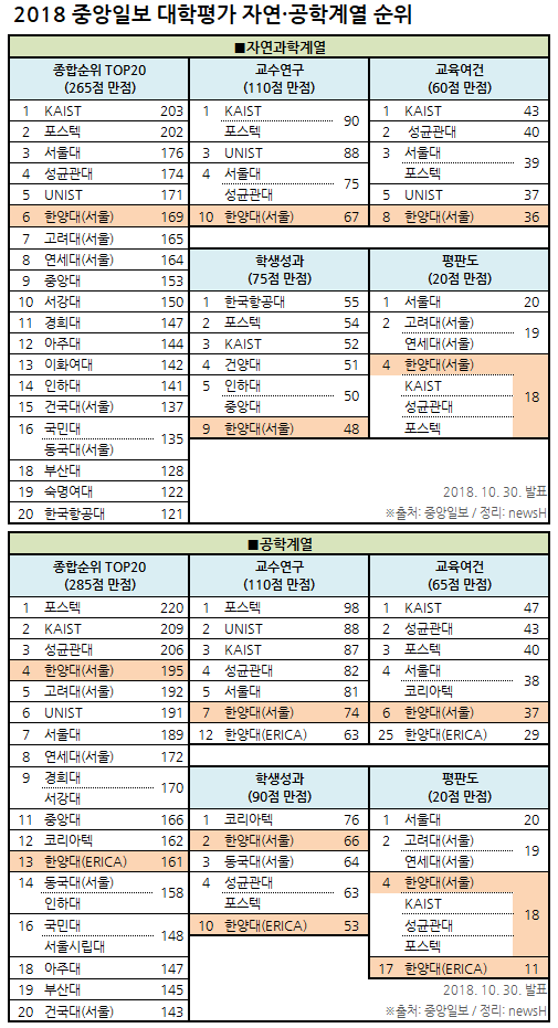 ▶ 2018 중앙일보 대학평가 '자연과학·공학 계열평가' 바로가기 (클릭)