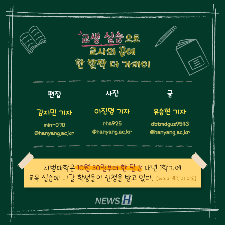 ▲ 카드뉴스의 원본 기사는 아래에서 읽을 수 있습니다교생 실습으로 교사의 꿈에 한 발짝 더 가까이 ▲ Click to read the English articleDear Next Trainee Teachers