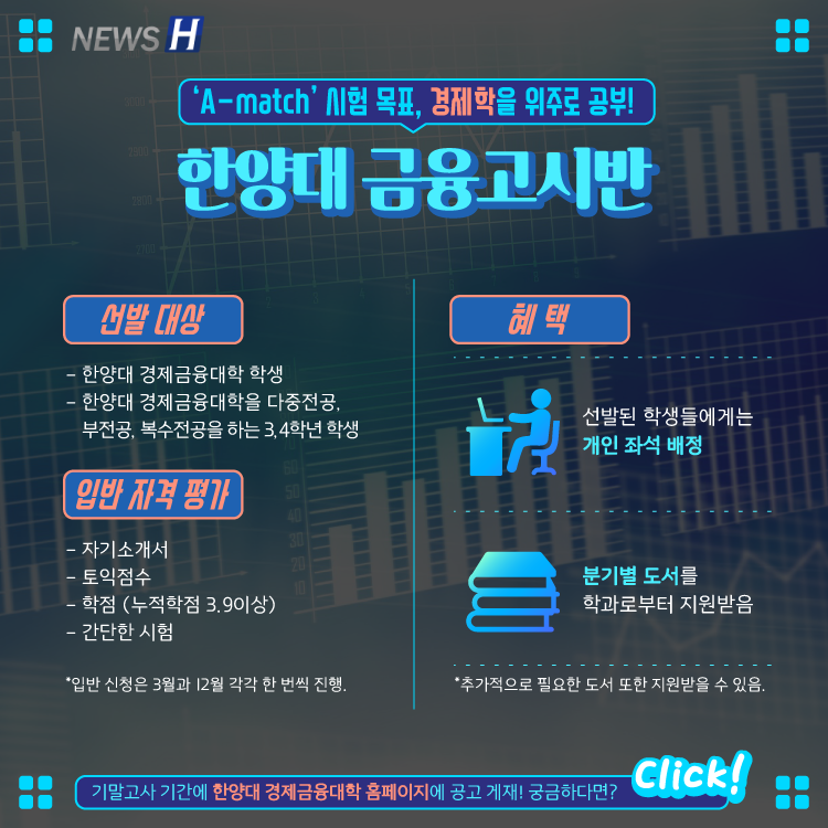 ▲ 카드뉴스의 원본 기사는 아래에서 읽을 수 있습니다- 'A-match'를 잡아라, 한양대 금융고시반▲ Click to read the English article- Undergraduate Honors Program in the College of Economics and Finance