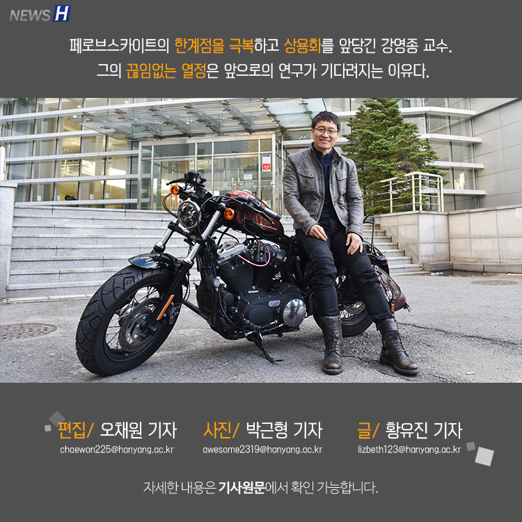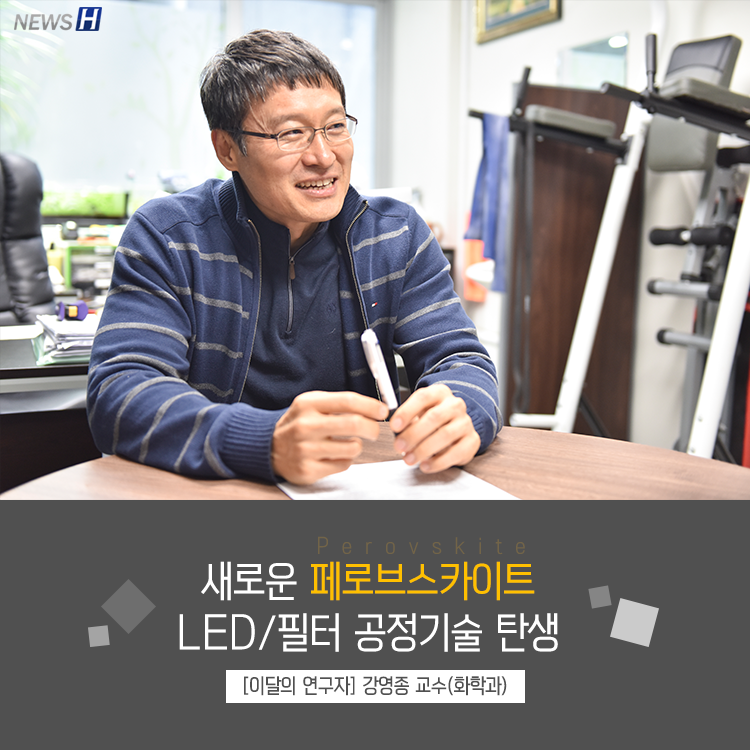 [이달의 연구자] 강영종 교수(화학과) ▲ 카드뉴스의 원본 기사는 아래에서 읽을 수 있습니다.- [이달의 연구자] 강영종 교수(화학과)▲ Click to read the English article - [Researcher of the Month] New Technology of Patterning the Perovskite 키워드 '한양위키' 키워드 보기 #LED #강영종 #리소그래피 #카드뉴스 #페로브스카이트 #한양대학교 오채원 chaewon225@hanyang.ac.kr 다른기사 보기 저작권자 © 뉴스H 무단전재 및 재배포 금지 당신만 안 본 뉴스 [포토스토리] "AI 시대 해답은 브랜딩", 오세훈 서울시장의 경영학 특강 현장 Into the Creation 2025, 창작자들의 꿈에 날개를 이찬규 학생, 사이버·우주 융합연구로 2025 사이버안보논문공모전 대상 수상 한양대, '2026 QS 지속가능성 순위' 세계 161위, 국내 4위 기록 해커톤에서 인턴십까지, 현대차 사내 스타트업에 다녀오다 [창업지원단 인턴십 경험기] [포토스토리] 한양 속에 사회혁신을 품다, SSIR 먼슬리 콜로키움 현장 행복은 좋은 경험의 ‘빈도’에서, 서은국 교수와 함께한 한양인의 힐링콘서트 현장 [포토스토리] "AI 시대 해답은 브랜딩", 오세훈 서울시장의 경영학 특강 현장 댓글삭제 삭제한 댓글은 다시 복구할 수 없습니다. 그래도 삭제하시겠습니까? 비밀번호 닫기 기사 댓글 0 댓글 접기 로그인 후 이용 가능합니다. 댓글 내용입력 비회원 로그인 이름 비밀번호 댓글 내용입력 댓글쓰기 계정을 선택하시면 로그인·계정인증을 통해 댓글을 남기실 수 있습니다. 회원 로그인 비회원 글쓰기 이름 비밀번호 자동등록방지 로그인 옵션 창닫기 기획기사 [포토스토리] "AI 시대 해답은 브랜딩", 오세훈 서울시장의 경영학 특강 현장 Into the Creation 2025, 창작자들의 꿈에 날개를 해커톤에서 인턴십까지, 현대차 사내 스타트업에 다녀오다 [창업지원단 인턴십 경험기] [포토스토리] 한양 속에 사회혁신을 품다, SSIR 먼슬리 콜로키움 현장 행복은 좋은 경험의 ‘빈도’에서, 서은국 교수와 함께한 한양인의 힐링콘서트 현장 [카드뉴스] '한양대학교 SDGs? 알고 보니 내 일상 속에 있었다!' 1편