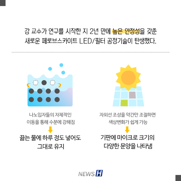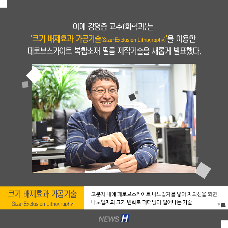 ▲ 카드뉴스의 원본 기사는 아래에서 읽을 수 있습니다.- [이달의 연구자] 강영종 교수(화학과)▲ Click to read the English article - [Researcher of the Month] New Technology of Patterning the Perovskite