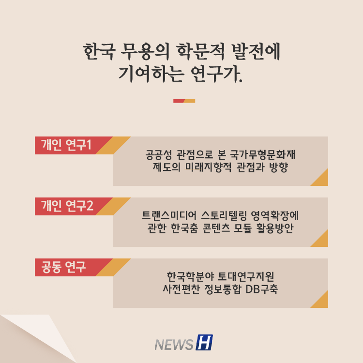 ▲ 카드뉴스의 원본 기사는 아래에서 읽을 수 있습니다- 글로써 춤을 사유하는 무용연구가▲ Click to read the English article- Carrying Out “Love in Deed” as a Researcher in Korean Dance