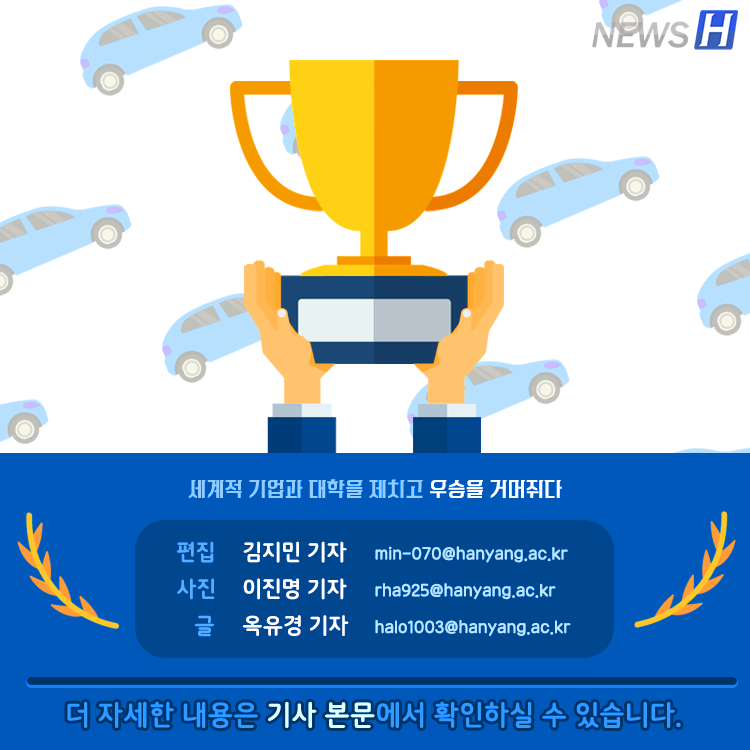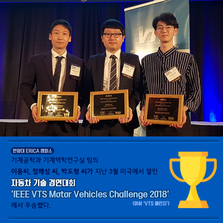 ▲ 카드뉴스의 원본 기사는 아래에서 읽을 수 있습니다한양대, 미국 자동차 기술 대회 ‘VTS 챌린지’ 우승▲ Click to read the English articleChallenge Yourselves, Youth!