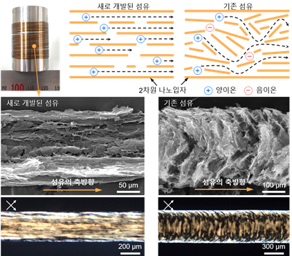 한 교수팀은 이 문제를 해결해 칼슘이온·신경전달물질 등의 화학물질을 선택적으로 전달할 수 있다. 연구진은 용액에 분산된 나노입자를 한 방향으로 빠르게 흘려 나노입자의 방향성을 유도했다. 그와 동시에 입자들을 빠르게 응집시켜 신호전달통로가 가지런히 정렬된 섬유를 개발했다.