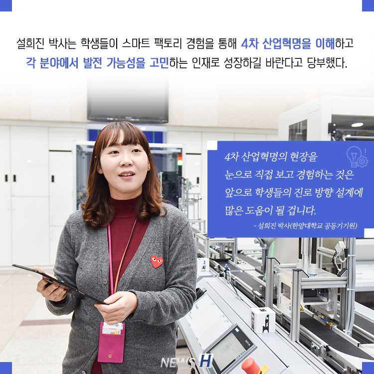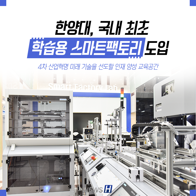 4차 산업혁명 미래 기술을 선도할 인재 양성 교육공간 ▲ 카드뉴스의 원본 기사는 아래에서 읽을 수 있습니다.- 한양대, 국내 최초 학습용 스마트팩토리 도입 ▲ Click to read the English article - Introducing the Smart Factory Lab 관련기사 서울캠퍼스에서 만나는 4차 산업혁명의 생생한 현장 키워드 '한양위키' 키워드 보기 #4차 산업혁명 #스마트팩토리 #인공지능 #카드뉴스 #한양대학교 오채원 chaewon225@hanyang.ac.kr 다른기사 보기 저작권자 © 뉴스H 무단전재 및 재배포 금지 당신만 안 본 뉴스 [포토스토리] "AI 시대 해답은 브랜딩", 오세훈 서울시장의 경영학 특강 현장 Into the Creation 2025, 창작자들의 꿈에 날개를 이찬규 학생, 사이버·우주 융합연구로 2025 사이버안보논문공모전 대상 수상 한양대, '2026 QS 지속가능성 순위' 세계 161위, 국내 4위 기록 해커톤에서 인턴십까지, 현대차 사내 스타트업에 다녀오다 [창업지원단 인턴십 경험기] [포토스토리] 한양 속에 사회혁신을 품다, SSIR 먼슬리 콜로키움 현장 행복은 좋은 경험의 ‘빈도’에서, 서은국 교수와 함께한 한양인의 힐링콘서트 현장 2025 중앙일보 대학평가 서울 3위, ERICA 13위 댓글삭제 삭제한 댓글은 다시 복구할 수 없습니다. 그래도 삭제하시겠습니까? 비밀번호 닫기 기사 댓글 0 댓글 접기 로그인 후 이용 가능합니다. 댓글 내용입력 비회원 로그인 이름 비밀번호 댓글 내용입력 댓글쓰기 계정을 선택하시면 로그인·계정인증을 통해 댓글을 남기실 수 있습니다. 회원 로그인 비회원 글쓰기 이름 비밀번호 자동등록방지 로그인 옵션 창닫기 기획기사 [포토스토리] "AI 시대 해답은 브랜딩", 오세훈 서울시장의 경영학 특강 현장 Into the Creation 2025, 창작자들의 꿈에 날개를 해커톤에서 인턴십까지, 현대차 사내 스타트업에 다녀오다 [창업지원단 인턴십 경험기] [포토스토리] 한양 속에 사회혁신을 품다, SSIR 먼슬리 콜로키움 현장 행복은 좋은 경험의 ‘빈도’에서, 서은국 교수와 함께한 한양인의 힐링콘서트 현장 [카드뉴스] '한양대학교 SDGs? 알고 보니 내 일상 속에 있었다!' 1편