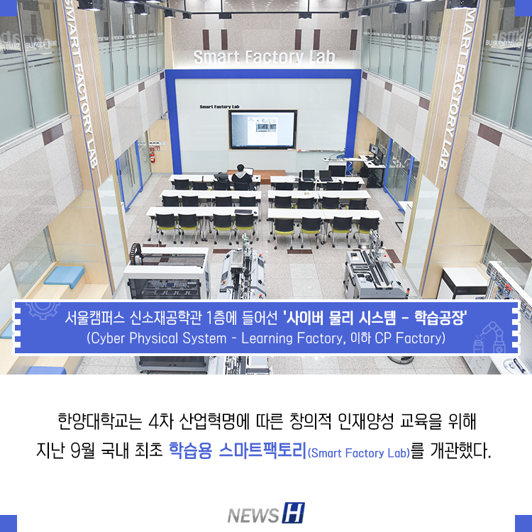 ▲ 카드뉴스의 원본 기사는 아래에서 읽을 수 있습니다.- 한양대, 국내 최초 학습용 스마트팩토리 도입 ▲ Click to read the English article - Introducing the Smart Factory Lab