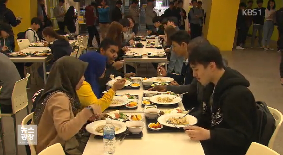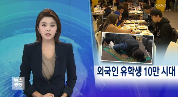 10월 20일 <KBS>는 외국인 유학생이 늘어남에 따라 변화하고 있는 대학가 소식이 전해졌습니다. 국내 외국인 유학생이 올해 처음으로 10만 명을 돌파했고, 교육부는 7년 뒤까지 외국인 유학생 20만 명을 유치할 계획을 가지고 있습니다. 한양대는 이슬람교 학생이 3백 명을 넘어서면서 학생들을 위한 '할랄 푸드코트'를 만들었는데요.