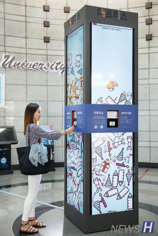 지난 9월 지하철 한양대역 2번 출구 애지문에 시선을 끄는 설치물이 들어섰다. 4면의 기둥 형태로 세워진 이 기기는 대학생과 테트리스를 조합해 ‘대트리스’라고 이름 붙인 기부 플랫폼이다. 교통카드를 대고 게임을 실행하면 벽돌이 쌓이고 일정 금액이 모이면 시민단체를 통해 도움이 필요한 곳으로 전달된다. 한 번에 결제되는 금액은 300원. 대트리스는 누구나 부담 없이 참여할 수 있는 금액과 게임이라는 흥미로운 접근 방식으로 소액 기부 활성화를 도모하는 프로젝트다.