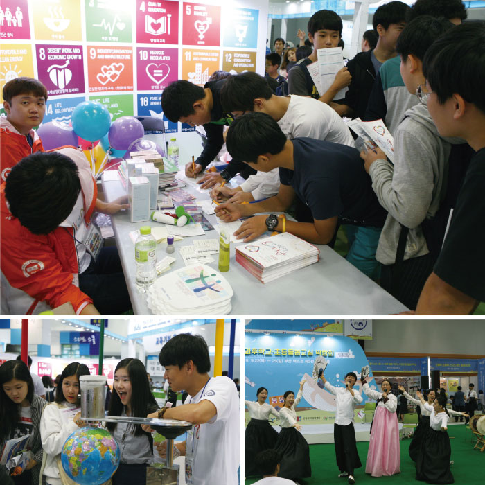 ‘Arirang for Youth’는 창작극 <아리랑> 공연을 필두로 다채로운 프로그램을 선보였다. 컴퓨터 프로그래밍, 스토리텔링, 비주얼 아 트, 사운드 이펙트 등이 만나 탄생한 작품을 가상현실(VR)로 시연 해 세상을 풍요롭게 만드는 과학과 예술의 세계를 소개했다. 버려지는 에너지를 전기 에너지로 변환하는 기술을 포함해 지구를 살리는 공학 기술, 저렴한 물건과 기술로 제3세계 국가에서 유용하게 사용할 수 있는 적정 기술, 영화와 공연 속에서 만날 수 있는 과학 이야기 등이 박람회 참가자들의 흥미를 끌었다. 또한 봉사자로 참여한 대학생들이 청소년의 멘토로서 SDGs를 소개하고, 이의 달성을 위해 생활 속에서 어떤 실천을 할 것인지 우편엽서에 적어보는 이벤트를 진행하기도 했다.