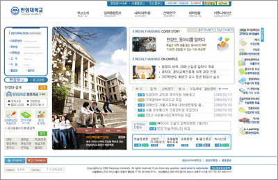 학교 홈페이지는 수강신청과 각종 증명서 출력, 자유게시판 이용까지 학교생활과 관련된 온갖 정보의 보고(寶庫)다. 홈페이지 첫 화면에서 학사, 행사, 모집 및 채용 등 각종 공지사항과 학내 소식을 한눈에 확인할 수 있다. 왼쪽 하단에는 외국인들을 위한 영어, 중국어 전용 홈페이지도 마련돼 있다. 사용 방법은 간단하다. ‘Engish'와 ’Chinese' 중 원하는 버튼을 누르면 해당 홈페이지로 바로 이동할 수 있다. ‘학교소개’ 탭(Tab)에 마우스를 위치하면 여러 가지 하위 메뉴가 나타난다. 여기서 ‘캠퍼스 안내’를 선택하면 학내 각 건물의 명칭, 건물에 부여된 번호와 위치를 한눈에 알아볼 수 있는 ‘캠퍼스 VR투어(Virtual Reality Tour)'를 이용할 수 있다. 이 기능은 아직 학내 각 건물의 위치와 번호가 익숙하지 않은 신입생에게 특히 유용할 것으로 전망된다.좀 더 생활과 밀접한 정보를 원한다면 ‘대학생활’ 탭을 클릭하면 된다. 왼편 메뉴를 통해서 도서관, 학사안내, 취업지원센터, 서비스센터 등 각 기관의 홈페이지에 바로 접근할 수 있다. 또한 화면 오른편은 양성평등센터, 한양상담센터, 여대생커리어개발센터 등의 홈페이지로 바로 이동할 수 있는 배너(banner)로 구성돼 있다. ‘금주의 메뉴’는 각 캠퍼스별로 한 주간의 학생식당 메뉴를 한눈에 볼 수 있어 메뉴 선택의 수고를 덜어준다. 이 외에도 학업상담부터 연애문제까지 학생들 사이에서 온갖 정보가 오가는 자유게시판은 ‘만능자게’라는 별명에 걸맞게 폭넓은 정보 획득은 물론 스터디 인원 모집 등 다양한 부가기능을 제공한다. 이지허브(eZHub)에서 제공하는 무료 웹 하드를 이용하면 손쉽게 개인자료를 저장하고 내려받을 수 있다.