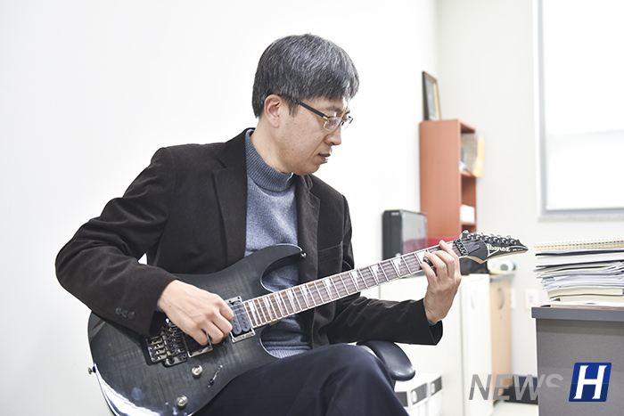 김정수 교수(행정학과)는 한 학기 동안 고생한 학생들을 위해 종강 기간에 맞춰 기타 연주를 준비한다. 종강 맞이 기타연주도 벌써 20년이 됐다. 김 교수가 기타에 관심을 가지게 된 계기는 영국의 전설적인 록 그룹 ‘퀸(Queen)’ 때문이다. 외국 헤비메탈에 심취해 당시 유행했던 포크와 디스코는 음악처럼 들리지도 않았다고. “학창시절부터 음악을 굉장히 사랑했어요. 중학교 때부터 기타를 배우기 시작했고, 대학생 때는 동창 친구들과 밴드를 결성해서 대학가요제 예선에 나가기도 했었죠. 지금은 직접 쓴 곡을 유튜브(클릭 시 이동)에 올리고 있어요."
