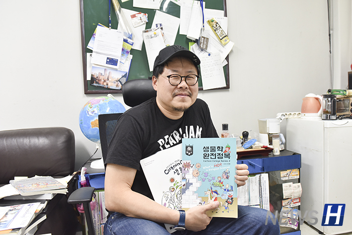 신인철 교수(생명과학과)의 만화는 교외에서도 소문이 자자하다. “과학을 사람들에게 쉽게 알려주고자 카툰칼리지(Cartoon College) 시리즈를 출간했어요. 아무래도 현장에 있는 과학자가 직접 그리고 설명하는 게 더 사람들에게 와닿지 않았나 생각해요.” 어렸을 때부터 게임과 축구보다 만화를 즐겨봤다는 신 교수는 이제 만화 그리는 과학자가 됐다. (관련 기사- '만화를 좋아하던 아이, 만화로 설명하는 과학자 되다' 클릭 시 이동)