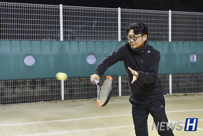 류수열 교수(국어교육학과)가 테니스 라켓을 잡은 건 15년 전이다. “강의를 하다 보니 체력이 뒷받침돼야 오랫동안 강단에 설 수 있겠다는 생각이 들더라고요. 혼자 하는 건 심심하고, 언제든지 할 수 있는 스포츠는 테니스뿐이었죠.” 수업 사이 빈 시간을 이용해 코트 장을 찾는다는 류 교수는 한양대학교 교직원 테니스대회에서 1등을 차지했을 정도로 수준급 실력을 갖추고 있다.