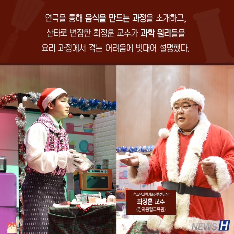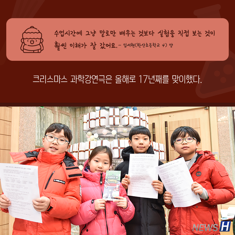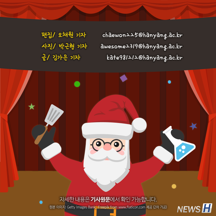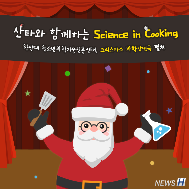 ▲ 카드뉴스의 원본 기사는 아래에서 읽을 수 있습니다-한양대 청소년과학기술진흥센터, 크리스마스 과학강연극 펼쳐 ▲ Click to read the English articleLearning Science With A Cheerful Santa