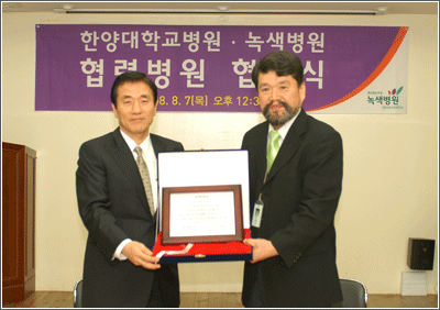 지난 7일 본교 의료원은 녹색병원과 협력병원 체결식을 가졌다. 중랑구 면목동에 위치한 녹색병원 대강당에서 열린 행사에 서울병원장 안유헌(의대·의학) 교수와 부원장 오석전(의대·의학) 교수, 양길승 녹색병원장 등 두 병원 관계자들이 참석했다. 한양대병원과 녹색병원은 진료 및 교육에 관한 협력을 구축하고 의료 서비스의 질을 높이는 것을 목표로 협력병원 협약을 체결했다.본교 의료원과 녹색병원 측은 사전에 조율한 협약 내용에 대한 확인과 양해를 마치고 서로 인사말과 기념사를 건네며 협력병원 협약의 의미를 되새겼다. 안 교수는 기념사에서 “지역사회에서 주민들의 삶의 질을 높이기 위해 노력하는 녹색병원과 협력을 체결하게 돼 기쁘다”고 밝히면서 “이번 협력병원 체결을 통해 적극적인 협력 관계를 구축해 공동발전을 이루도록 힘쓰겠다”고 말했다. 양길승 녹색병원장은 “한양대병원과 협력을 통해 끊임없는 연구를 지속해 의료의 새 미래를 만들어 나가도록 노력하겠다”고 밝혔다.
