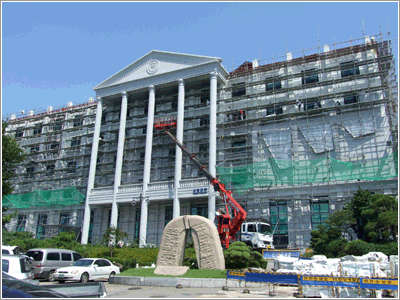제 1법학관에선 방학 중 대대적인 구조 변경 공사가 이뤄졌다. 지하 3층, 지상 7층에 4천5백㎡ 정도의 규모로 진행된 이번 공사는 법학관의 로스쿨 역할 수행에 초점이 맞춰졌다. 언제나 지적돼왔던 공간 확보를 위해 내부 구조를 재배치한 결과 동아리방, 학과 사무실 등이 확장됐다. 그리고 법학 연구소와 동아리방이 들어갈 공간이 재구성 됐으며 지정 열람실의 규모와 좌석수도 늘어났다. 여기에 그동안 미비했던 중앙집중식 냉난방시설도 완비돼 한층 수준 높은 학습 환경을 마련했다.지난해부터 이어진 사범대와 경제금융관 그리고 법학학술정보관의 구조 변경도 외장 마무리가 한창이다. 세 건물 모두 세 번의 방학에 걸친 대대적인 구조 변경 공사를 통해 완벽하게 새로운 건물로 다시 태어났다. 사범대는 기존의 건물에서 두 개 층을 증축하여 공간 확보에 성공했다. 교직도서관, 멀티미디어실 신설 등과 같은 공간 재배치를 통해 쾌적한 학업 환경을 조성한 점은 학생들로부터 좋은 평가를 받고 있다. 이번 방학 중에는 외장 벽면 공사와 구조 변경의 최종적인 마무리 작업이 진행됐다.
