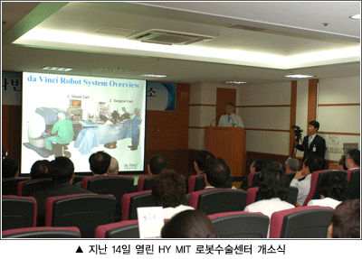 이번 행사에선 HY MIT 로봇수술센터장 이춘용(의대·의학) 교수가 다빈치 로봇수술에 대한 경과보고를 진행했으며, 행사장과 로봇수술센터실의 동시 생방송을 통해 다빈치 로봇수술센터와 수술방법에 대한 소개가 이뤄졌다. 한편 지난 20일엔 로봇수술로 명성이 높은 뉴저지 주립대 비뇨기과 아이삭 김(Isacc Kim) 주임교수를 초청해 다빈치 로봇수술을 시연하기도 했다.