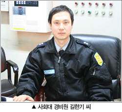 사회과학대학 경비원 길한기 씨는 한양에서 일한 지 5개월 만에 학생들 사이에서 유명해졌다. 경직되거나 무뚝뚝한 모습 대신 항상 만면에 웃음을 머금은 채 친절봉사를 몸소 실천하기 때문이다. 이에 대해 길 씨는 “내성적인 성격 때문에 일부러 웃으려고 노력한다”는 이야기를 털어놓았다. 길 씨는 2교대로 근무하며 24시간 동안 사회과학대학 건물의 보안 업무를 담당하고 있다. 분실물 보관이나 환경정리 또한 그의 몫이다. 길 씨는 “학생들이 먼저 알아보고 인사할 때, 그리고 지갑이나 필통 등 학생들이 잃어버린 물건을 찾아줄 때 보람을 느낀다”고 한다. 또한 그는 “젊은 학생들을 매일 접하다보니 마음까지 젊어지는 기분이 든다”며 지금의 일터에 만족하는 모습을 보였다. 하지만 길 씨는 “전단지를 무분별하게 벽에 붙이거나 음주 후 건물 내에서 떠드는 행위는 학생들이 스스로 자제해달라”는 이야기를 덧붙였다.복사에 정(情)을 싣고 - 한양플라자 복사가게 정대규 씨