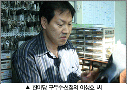 본교에서 가장 바쁜 사람을 뽑자면 이 사람을 빼놓을 수 없다. 하루에 평균 구두 70켤레 가량을 손질한다는 한마당 구두수선가게 주인 이성호 씨. 이 씨는 지난 95년부터 무려 14년 동안 서울캠퍼스에서 구두를 수선해 왔다. 초창기에 이 씨는 구두수선만 하다가 지금은 가게를 조금 확장해 열쇠와 도장까지 취급하고 있다. 이 씨는 “오랫동안 학교에서 일할 수 있는 것은 모두 학생들과 교직원 여러분들 덕분”이라며 고마움을 밝혔다. 이 씨 또한 ‘한양인은 곧 가족’이라는 생각으로 일하기 때문에 그를 먼저 알아보고 인사를 건네는 학생들이 많다고 한다. 또 그는 “10년 이상 단골손님이 되어준 졸업생들과 직원들도 있다”며 “나의 보금자리가 돼 준 학교와 학교의 구성원들에게 무한히 감사한다”고 전했다.김준연 학생기자 halloween@hanyang.ac.kr