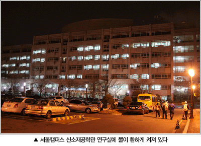 [서울캠퍼스] 모든 수업이 끝난 시간임에도 불구하고 교정 곳곳에 불이 환하게 켜져 있다. 이 불빛들이 교정의 밤을 지키고 있다. 학업을 마무리 하거나 밤 늦도록 연구실에서 연구에 열중하는 한양인의 모습이 떠오른다. 행정대학원이나 언론정보대학원 등 특수대학원에선 직업인에서 학생으로 돌아온 학생들이 늦은 수업을 진행하고 있다. 더러는 지쳐 힘이 들기도 했고, 더러는 함께 했던 친구 덕분에 웃기도 했던 이 밤, 이 불빛들이 모여 한양의 힘이 될 것이다. 그래서 한양인의 밤은 열정이다.충전(充電). 23 : 00