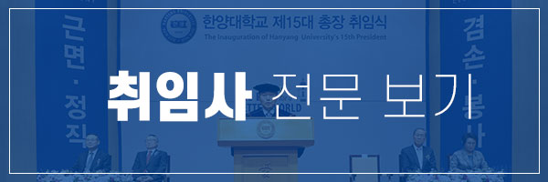 취임사에서 김 총장은 “최근 학령인구 감소와 재정적 어려움, 시대의 변화에 따른 교육방식과 패러다임의 변화로 인해 어려움을 겪고 있다”고 대학들의 현실적인 어려움을 언급했다. 이어 “하지만 변화와 도전은 한양대의 발전 동력이었다”며 “한양대의 전통인 실용학풍을 통해 글로벌 경쟁을 선도할 수 있는 교육‧연구‧산학협력 혁신을 이뤄내겠다”고 강조했다.