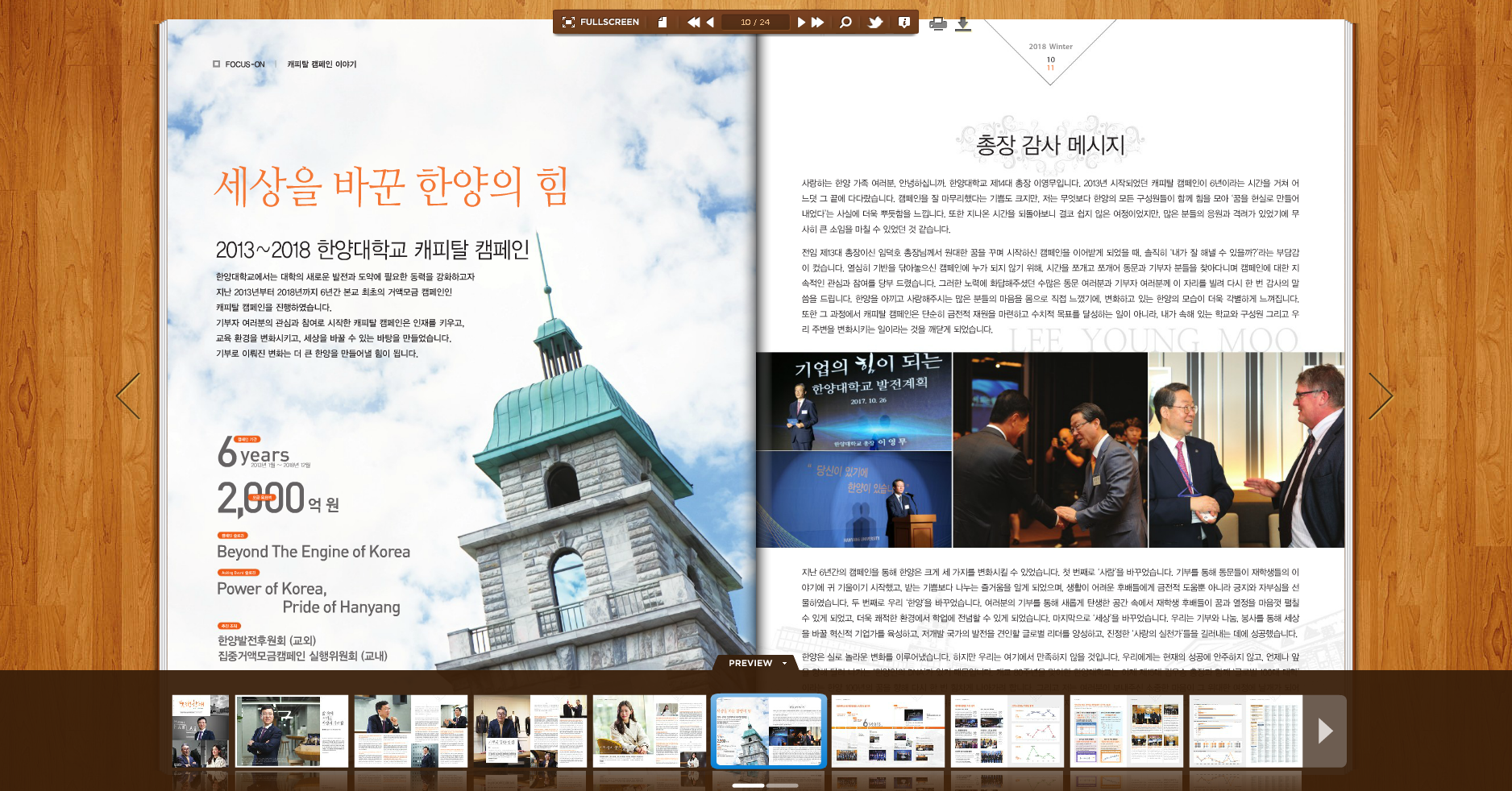 이어서 2018년 한양대의 성과를 소개하는 'HYU NEWS', 다양한 발전기금 소식을 담은 '발전기금 News'가 실려있다.