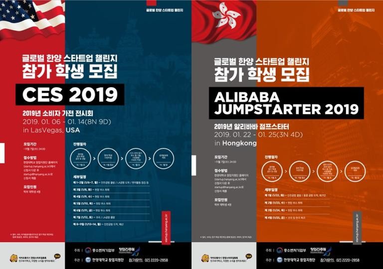 한양대학교 창업지원단은 재학생들을 비롯한 예비 창업자 및 일반 기업인들을 세계적인 기업가로 육성한다. 창업지원단은 지난 2009년 국내 대학 최초로 교내 글로벌기업가센터를 설립한 이후 한양인들에게 글로벌 아이템을 발굴할 기회를 꾸준히 제공하고 있다. 지난해는 창업에 관심을 가진 학생들에게 실전 경험을 제공하기 위해 ‘2018년 글로벌 한양 스타트업 챌린지’ 참가자를 모집했다. 선발된 여덟 명의 한양인들은 올해 초 네 명씩 홍콩과 미국으로 각각 떠나 대규모 행사를 체험하고 왔다.