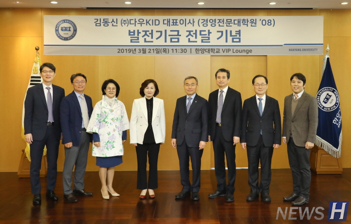 ‘김동신 ㈜다우케이아이디 대표이사(경영전문대학원 석사 08) 발전기금 전달식’이 3월 21일(목) 서울캠퍼스 신본관 2층 총장실에서 개최됐다.