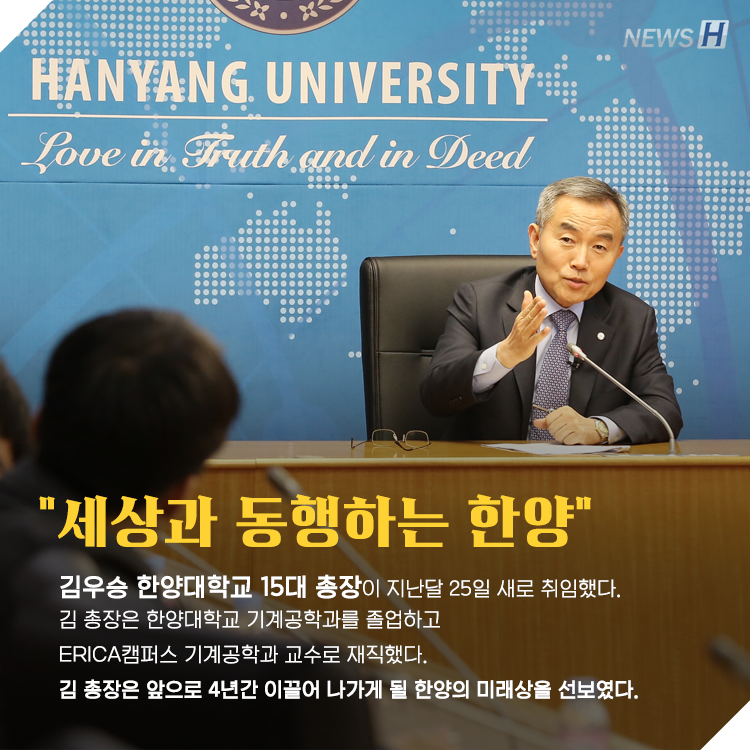 ▲ 카드뉴스의 원본 기사는 아래에서 읽을 수 있습니다 [인터뷰] ‘김우승’ 한양대 신임 총장…3S 전략으로 세상과 동행하는 대학 만들고파 ▲ Click to read the English article The 15th President of Hanyang, Kim Woo-seung
