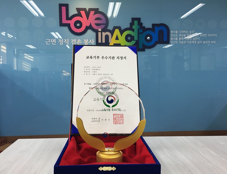 한양대 사회봉사단은 “인증을 준비하는 과정이 쉽지만은 않았지만 한양대학교 내에서 이뤄지는 여러 교육기부활동을 파악하며 건학이념 '사랑의 실천'을 몸소 행하고 있는 학생, 교수, 직원이 많다는 것을 확인할 수 있었다”고 전했다.