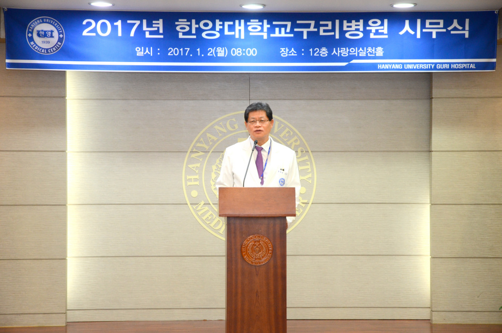 이어 “2017년 정유년은 한양대학교구리병원이 향후 미래의 진료환경에 새로운 도약을 준비하는 해가 될 것이라면서 새해에도 병원을 향한 여러분들의 사랑의 힘을 모아 병든 환자와 환자 가족에게 무한한 신뢰와 믿음을 주는 ‘사랑 주는 병원, 사랑 받는 병원’을 만들어 가자”고 선언했다.