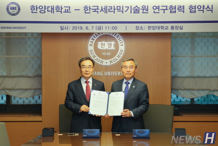 한양대는 6월 7일 서울 성동구 서울캠퍼스에서 한국세라믹기술원(원장 유광수)과 연구협력을 위한 협약(MOU)을 체결했다. 이번 협약은 세라믹 분야의 첨단 소재개발과 인재양성을 위해 이뤄졌다. 이번 협약으로 양 측은 연구 인력과 학생 교류를 통해 소재 기반 연구·기술 교류 및 공동연구 협력 강화를 추진하기로 했다.