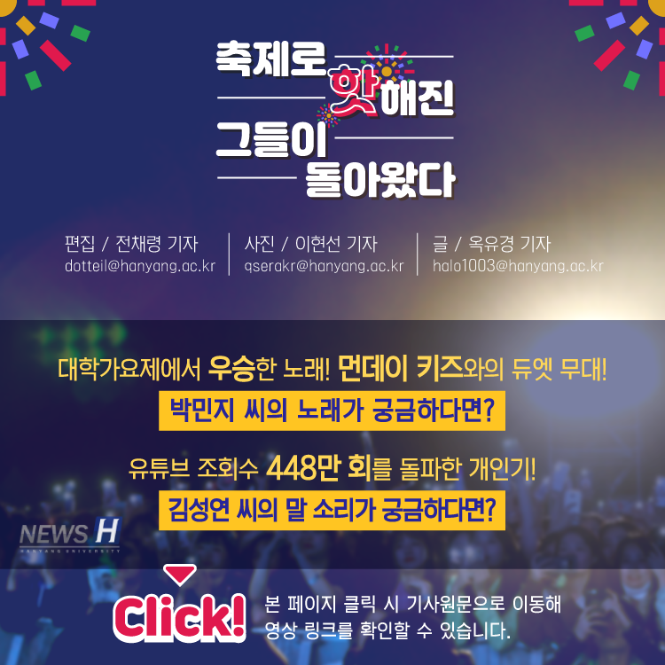 ▲ 카드뉴스의 원본 기사는 아래에서 읽을 수 있습니다- 축제로 '핫' 해진 그들이 돌아왔다▲ Click to read the English article-ERICA's Got Talent