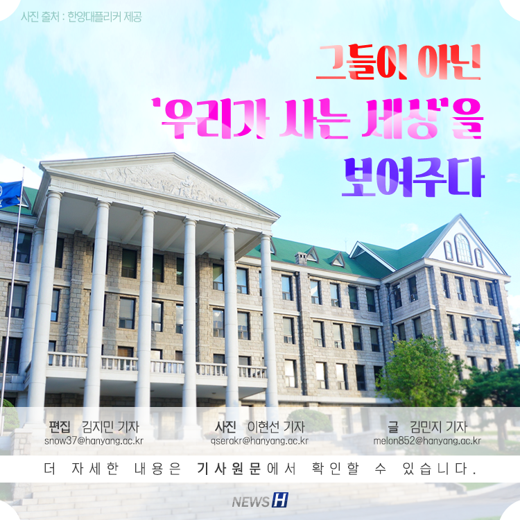 ▲ 카드뉴스의 한글 기사는 아래에서 읽을 수 있습니다그들이 아닌 '우리가 사는 세상'을 보여주다▲ Click to read the English articleHanyang University X Documentary 3 Days