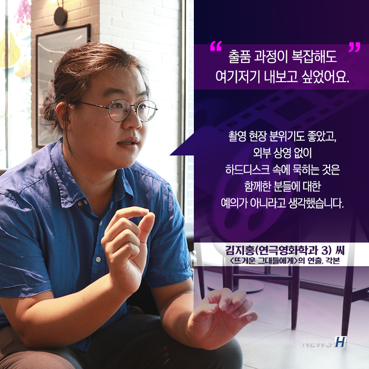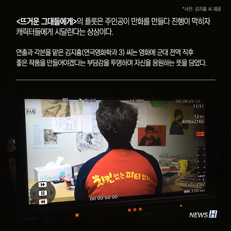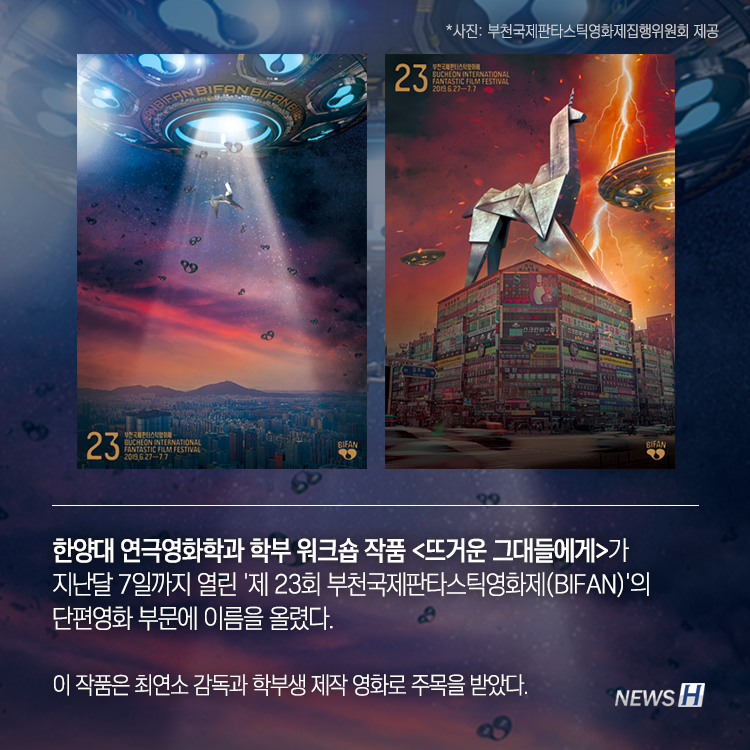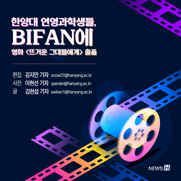 아시아 최고 영화제에 한양대 학부생으로만 구성된 워크숍 영화 선보여 ▲ 카드뉴스의 한글 기사는 아래에서 읽을 수 있습니다한양대 연영과학생들, BIFAN에 영화 <뜨거운 그대들에게> 출품 김지민 spotlight_5@naver.com 다른기사 보기 저작권자 © 뉴스H 무단전재 및 재배포 금지 당신만 안 본 뉴스 [포토스토리] "AI 시대 해답은 브랜딩", 오세훈 서울시장의 경영학 특강 현장 Into the Creation 2025, 창작자들의 꿈에 날개를 이찬규 학생, 사이버·우주 융합연구로 2025 사이버안보논문공모전 대상 수상 한양대, '2026 QS 지속가능성 순위' 세계 161위, 국내 4위 기록 해커톤에서 인턴십까지, 현대차 사내 스타트업에 다녀오다 [창업지원단 인턴십 경험기] [포토스토리] 한양 속에 사회혁신을 품다, SSIR 먼슬리 콜로키움 현장 행복은 좋은 경험의 ‘빈도’에서, 서은국 교수와 함께한 한양인의 힐링콘서트 현장 2025 중앙일보 대학평가 서울 3위, ERICA 13위 댓글삭제 삭제한 댓글은 다시 복구할 수 없습니다. 그래도 삭제하시겠습니까? 비밀번호 닫기 기사 댓글 0 댓글 접기 로그인 후 이용 가능합니다. 댓글 내용입력 비회원 로그인 이름 비밀번호 댓글 내용입력 댓글쓰기 계정을 선택하시면 로그인·계정인증을 통해 댓글을 남기실 수 있습니다. 회원 로그인 비회원 글쓰기 이름 비밀번호 자동등록방지 로그인 옵션 창닫기 기획기사 [포토스토리] "AI 시대 해답은 브랜딩", 오세훈 서울시장의 경영학 특강 현장 Into the Creation 2025, 창작자들의 꿈에 날개를 해커톤에서 인턴십까지, 현대차 사내 스타트업에 다녀오다 [창업지원단 인턴십 경험기] [포토스토리] 한양 속에 사회혁신을 품다, SSIR 먼슬리 콜로키움 현장 행복은 좋은 경험의 ‘빈도’에서, 서은국 교수와 함께한 한양인의 힐링콘서트 현장 [카드뉴스] '한양대학교 SDGs? 알고 보니 내 일상 속에 있었다!' 1편