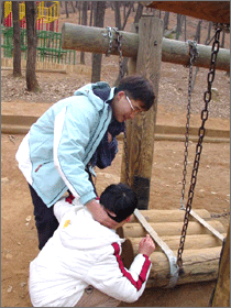 지난 9일에도 변함없이 손말사랑회 회원들을 볕바라기로 걸음을 옮겼다. 그날은 가리봉동 근처 광명시에 자리잡은 구름산을 등반하는 날이었다. 구정연휴 때문에 고향으로 내려간 이들이 많아 참가회원들은 평소보다 적은 듯 했다. 보통 1명의 봉사자는 1명의 아이를 돌보게 되지만 특별한 경우 1명의 아이를 2명의 봉사자가 돌보는 경우도 있고, 그 반대의 경우도 있다.