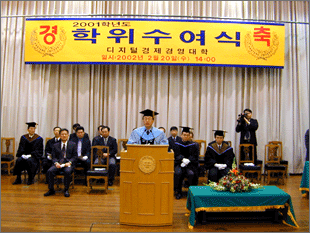 지난 20일 안산캠퍼스에서는 '2001학년도 전기 학위수여식'이 각 단과대별로 오전과 오후로 나뉘어 열렸다. 이번 학위수여식에서 공학대 783명, 국제문화대 331명, 디지털경제경영대 282명, 과학기술대 177명, 디자인대 121명, 언정대 103명, 생활체육대 79명 등 총 1,876명이 학사 학위를 받았다.