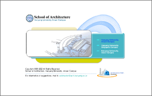 안산캠퍼스 건축학부 홈페이지(이하 건축홈 http://arch.hanyang.ac.kr/)는 웅장한 음악소리로 시작된다. 웅장한 배경음악에다 현란한 플래시가 돋보이는 건축홈은 최첨단 건축물을 디자인하는 인재를 양성하는 학과의 성격을 고스란히 보여주고 있다.