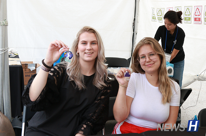 애지문과 사자상 광장에는 교내외 단체들의 부스도 함께했다. ‘플레이31’은 사회적 기업으로, 폴리프로필렌(PP), 폴리에틸렌(PE) 계열의 재활용 가능한 플라스틱을 이용해 키링을 만드는 활동을 준비했다. 쓰고 버려지는 우유팩, 세제 페트병 등을 잘라서 다리미로 녹이는 방식이다. PP, PE 계열은 다시 녹일 때 환경호르몬이 나오지 않아 친환경적이며, 집에서도 쉽게 따라 할 수 있다. ‘체인지메이커 멘토링 캠프’는 사회혁신센터 내 창의캠프활동을 홍보하는 부스로, 식수 운반의 새로운 방법에 대해 소개했다. 텀블러 등 용기마저 사용하지 않는 새로운 식수 휴대법으로, 물의 외면에 식용의 얇은 막을 씌워 물 자체를 들고 다닌다.